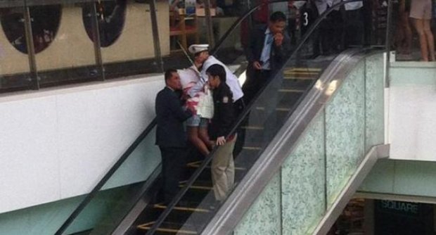 โดยหนึ่งในผู้เข้ามาใช้บริการเปิดเผยว่า จุดเกิดเหตุอยู่ใกล้โซลน้ำพุเดิม และกำลังมีการจัดงานโปรโมทสินค้า ขณะที่เด็กหญิงคนดังกล่าวกำลังขึ้นบันไดเลื่อนจาก 2 ขึ้นไปชั้น 3 ระหว่างนั้นมีเสียงคนเอะอะโวยวายว่า เกิดอุบัติเหตุบันไดเลื่อนหนีบคอเด็กหญิงเคราะห์ร้ายคนหนึ่งไปขัดติดคาอยู่และระหว่างนั้นมีผู้เข้ามาใช้บริการพยามดึงร่างเด็กหญิงคนดังกล่าวออกจากบันไดเลื่อน และรีบนำส่ง รพ.ปทุมเวช โดยมีอาการหมดสติและบาดเจ็บที่ศีรษะ